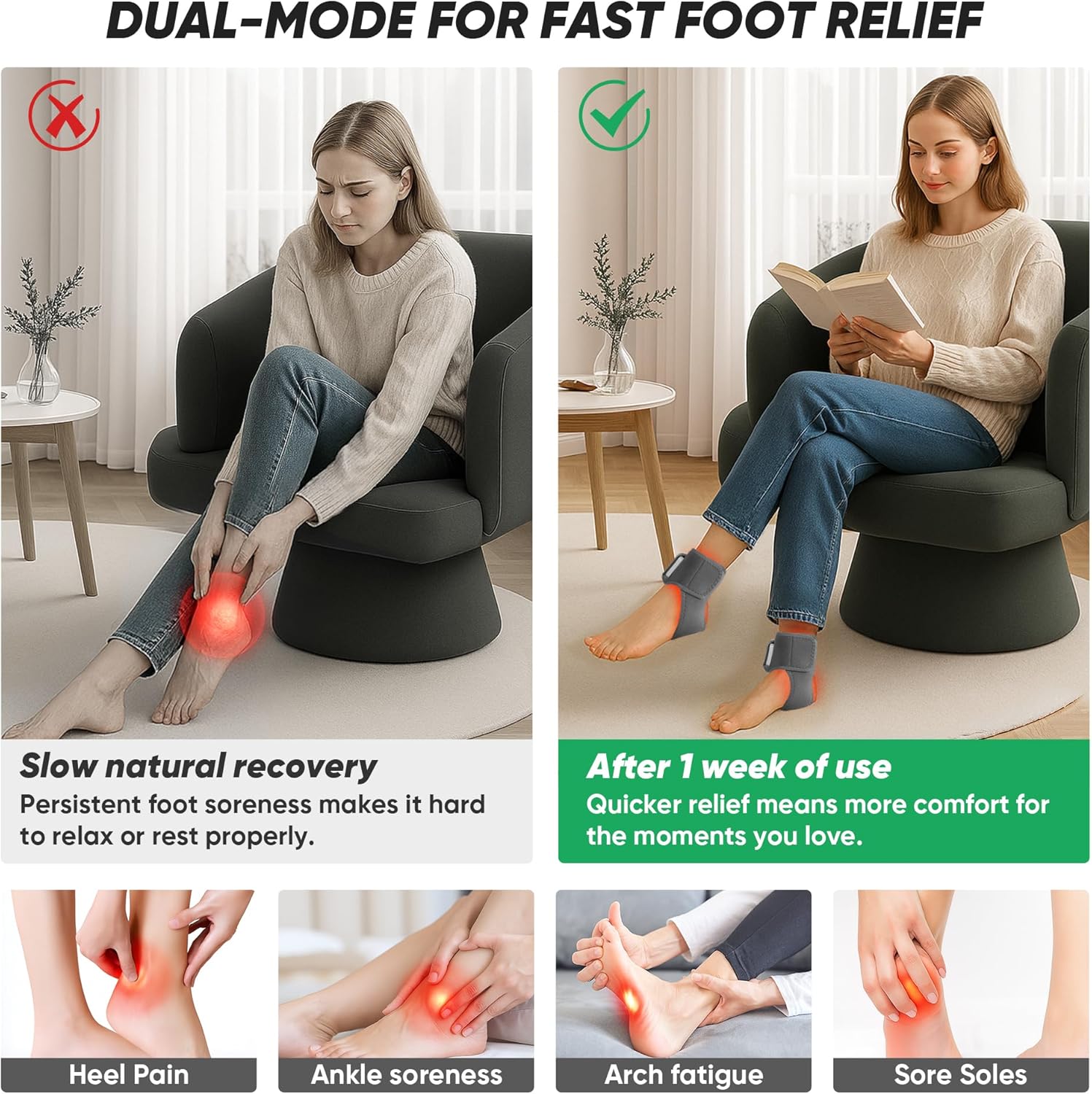 Adjustable Fit & Soothing Vibration Foot Massagers, Ideal Gift for Parents – Gray
