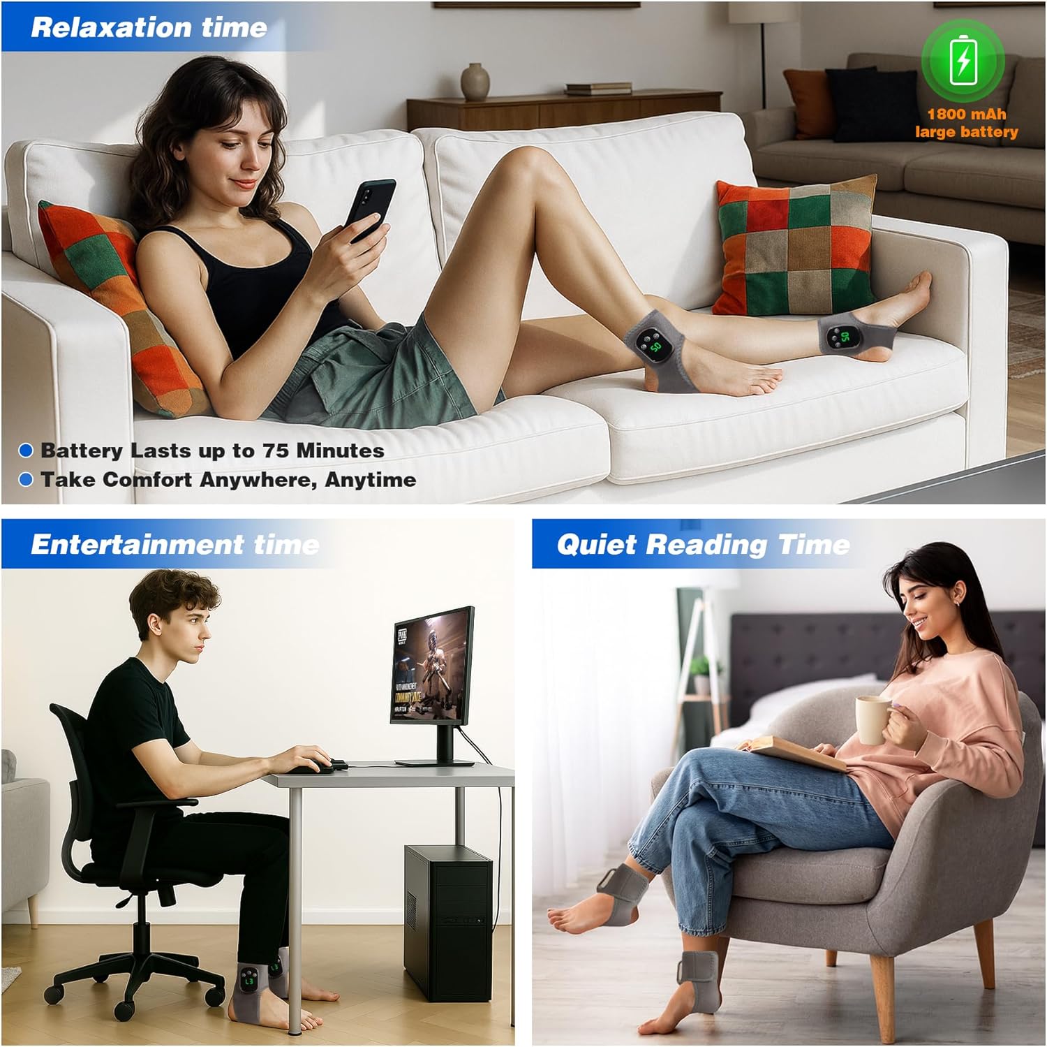 Inknows Foot Triple Method Massager – Cordless Portable Foot and Ankle Massager with 3D Heat Wrap